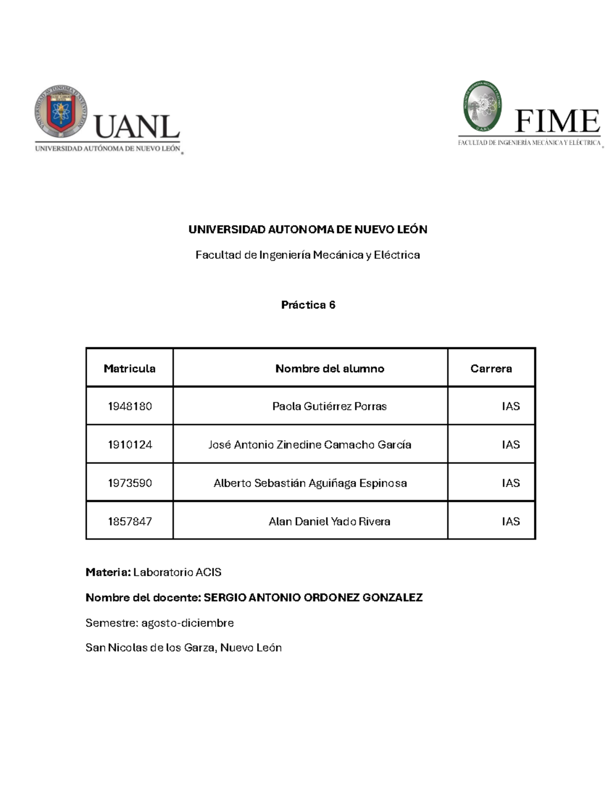 Practica 6 Equipo - Ndjsjs - UNIVERSIDAD AUTONOMA DE NUEVO LEÓN ...