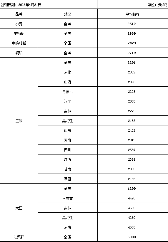【全国主要粮食品种收购价格周报(4月21日)】-国家发展和改革委员会
