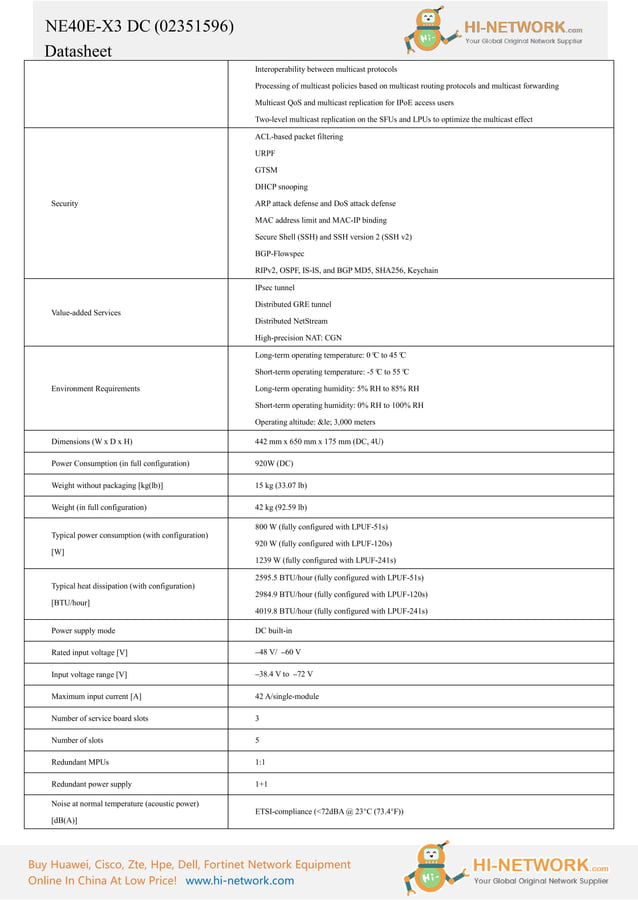 Huawei NE40E-X3 DC Price Specs - Thunder-link.com
