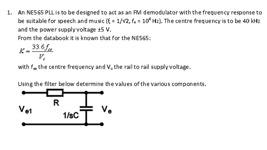 Solved 1. An NE565 PLL is to be designed to act as an FM | Chegg.com