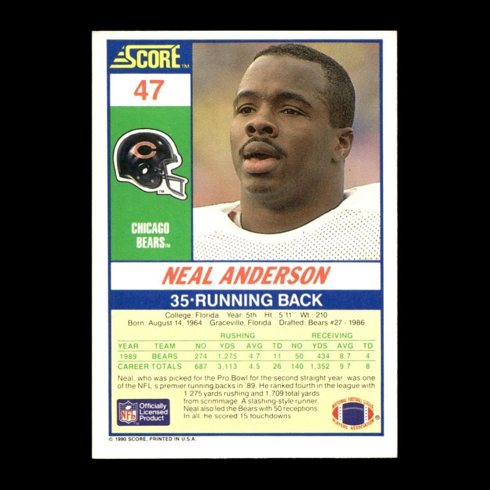 1990 SCORE NEAL ANDERSON CHICAGO BEARS #47 | eBay