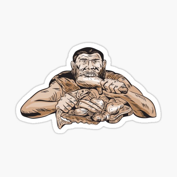 "Neanderthal Man Eating Paleo Diet Etching" Sticker for Sale by ...