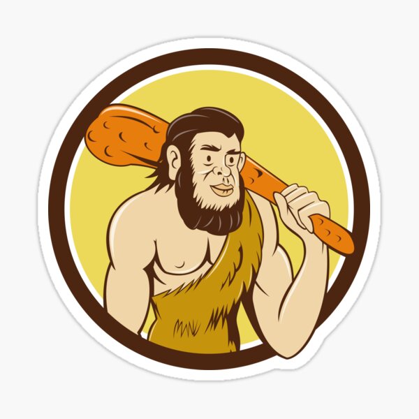 "Neanderthal Man Holding Club Circle Cartoon" Sticker for Sale by ...
