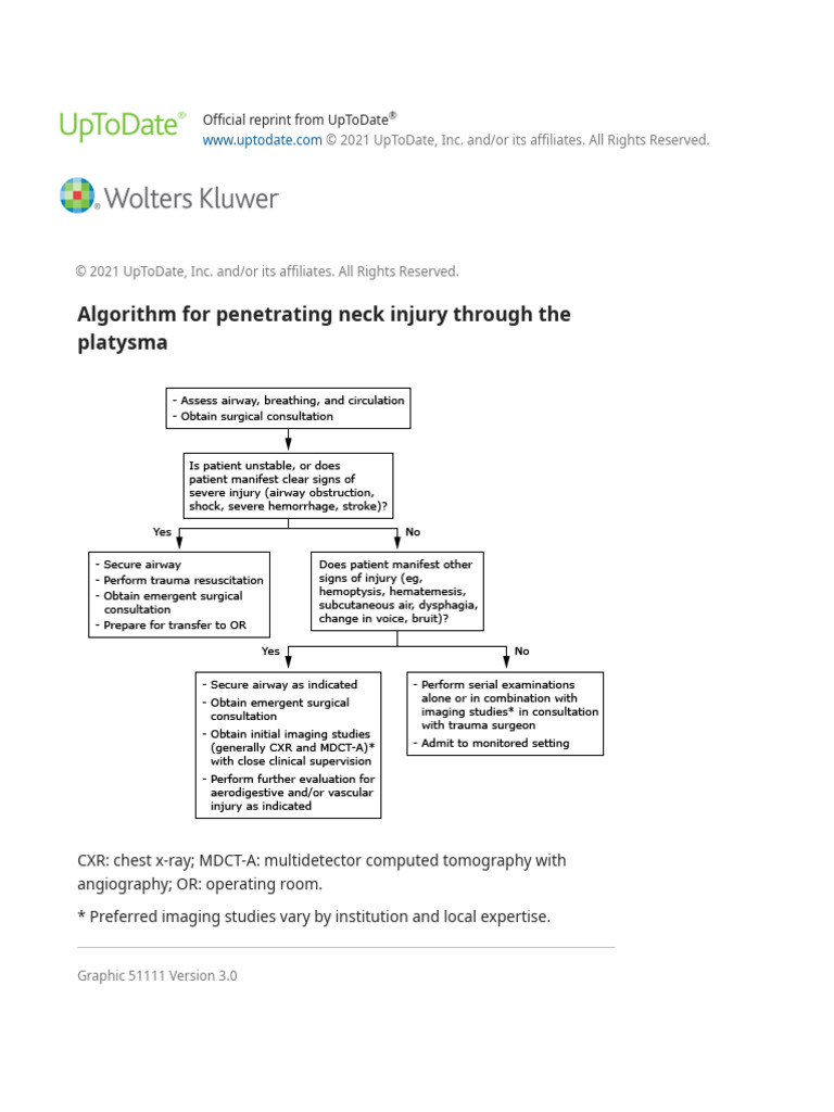 Penetrating Neck Injury Through Platysma Algorithm UpToDate | PDF