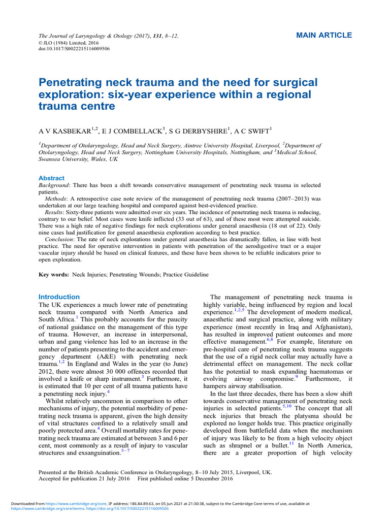 Management of Blunt and Penetrating Neck Trauma | PDF | Stroke | Injury