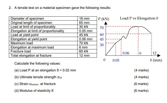 Solved 2. A tensile test on a material specimen gave the | Chegg.com