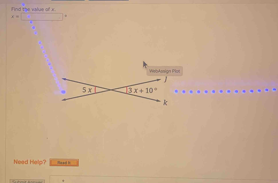 Find the value of x. x= WebAssign Plot Need Help? Read It [Math]