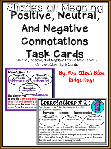 Positive and Negative Connotation Task Cards (with context clues ...
