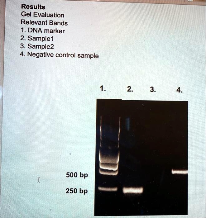 results gel evaluation relevant bands 1 dna marker 2 sample1 3 sample2 ...