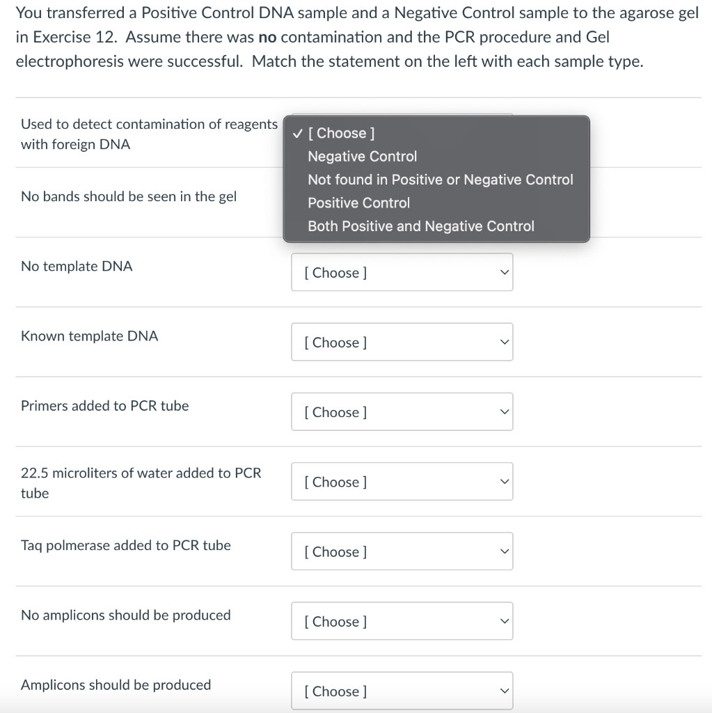 Solved You transferred a Positive Control DNA sample and a | Chegg.com