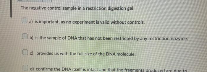 Solved The negative control sample in a restriction | Chegg.com