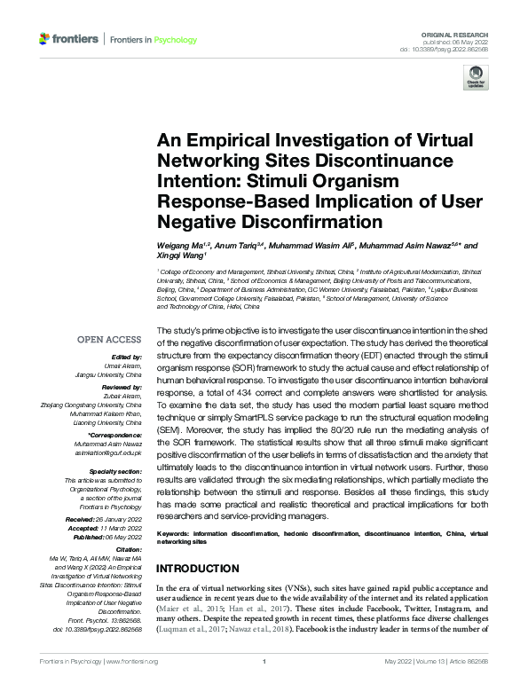 Frontiers | An Empirical Investigation of Virtual Networking Sites ...
