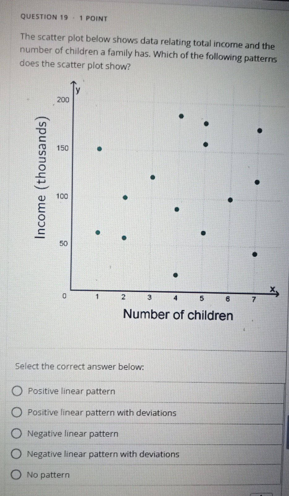 Solved: patterns does the scatter plot show? Select the correct answer ...