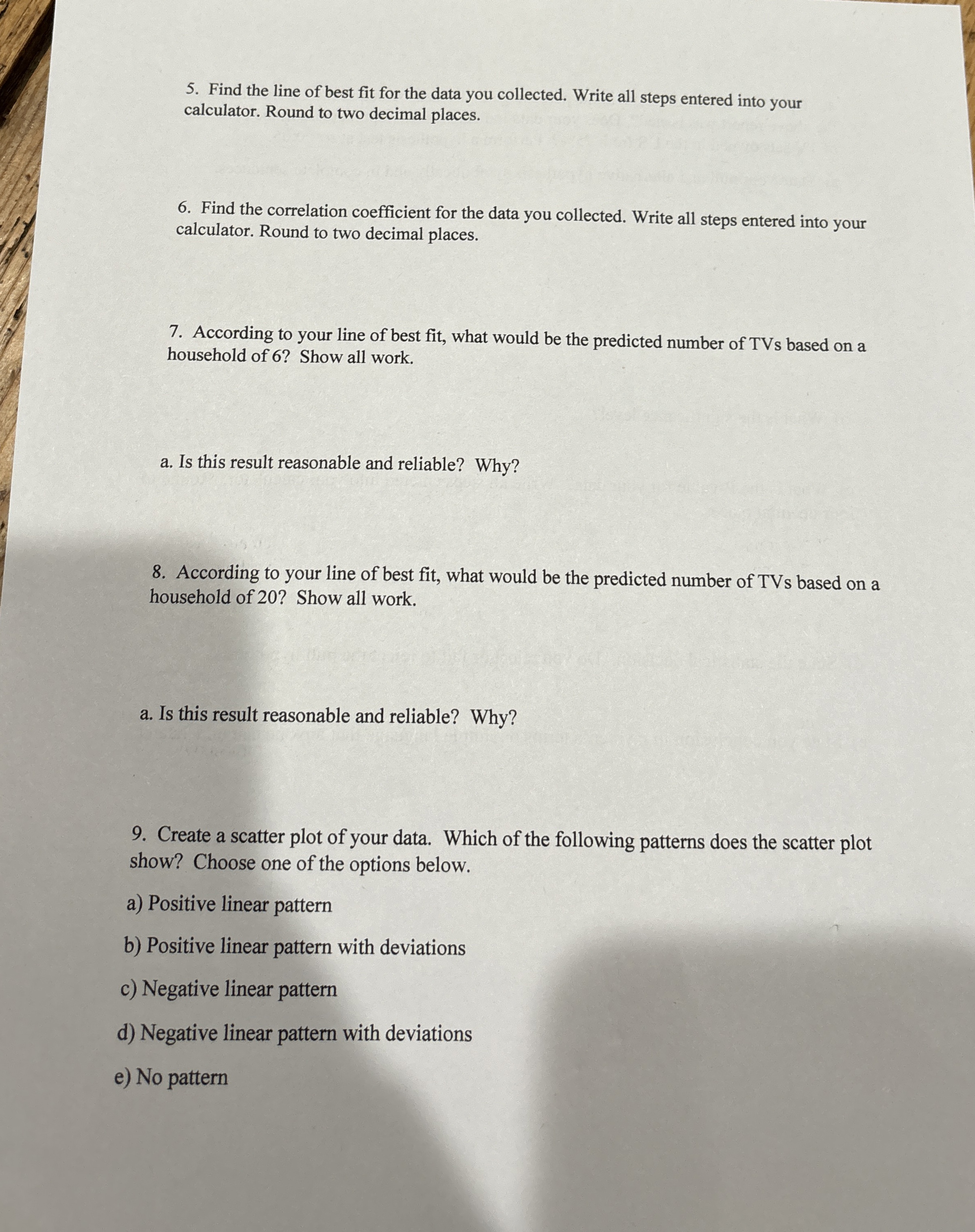 Find the line of best fit for the data you collected. | Chegg.com