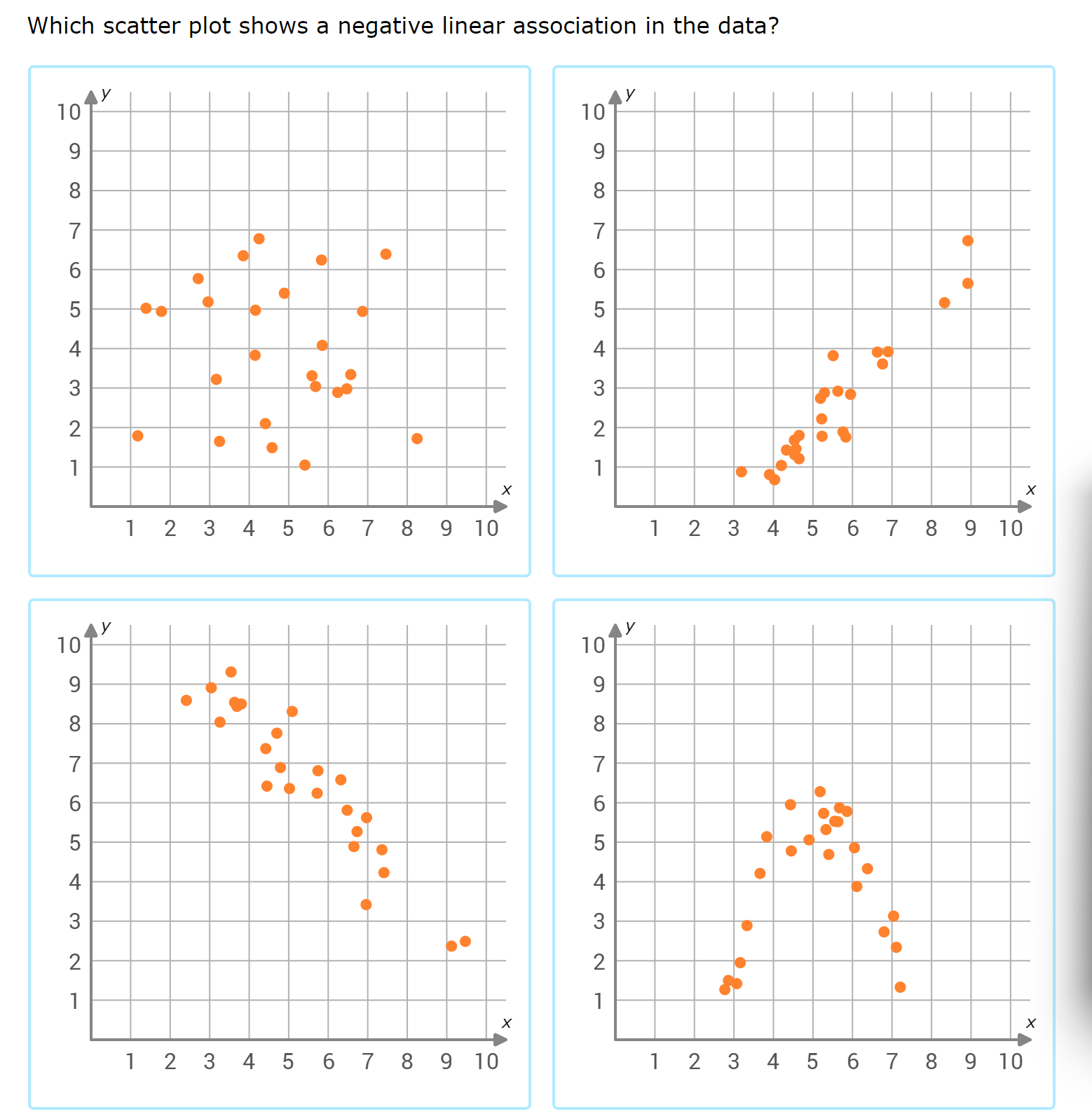 Which scatter plot shows a negative linear | StudyX