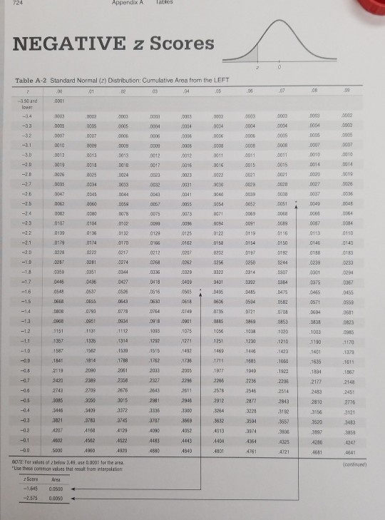Solved Standard Normal Table (Page 1) NEGATIVE z | Chegg.com