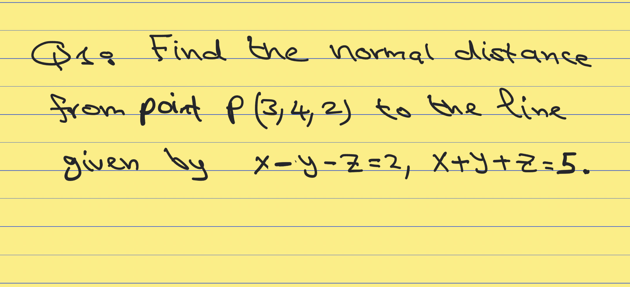 Solved Q1: Find the normal distancefrom point P(3,4,2) to | Chegg.com
