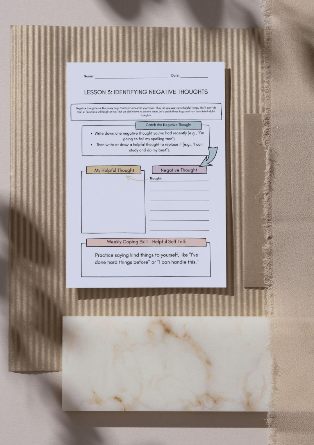 Identifying Negative Thoughts (CBT for Kids Worksheet 3/10) - Etsy