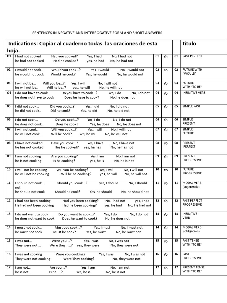 Unidad 5. Actividad 3. Entregable. Short Affirmative and Negative ...