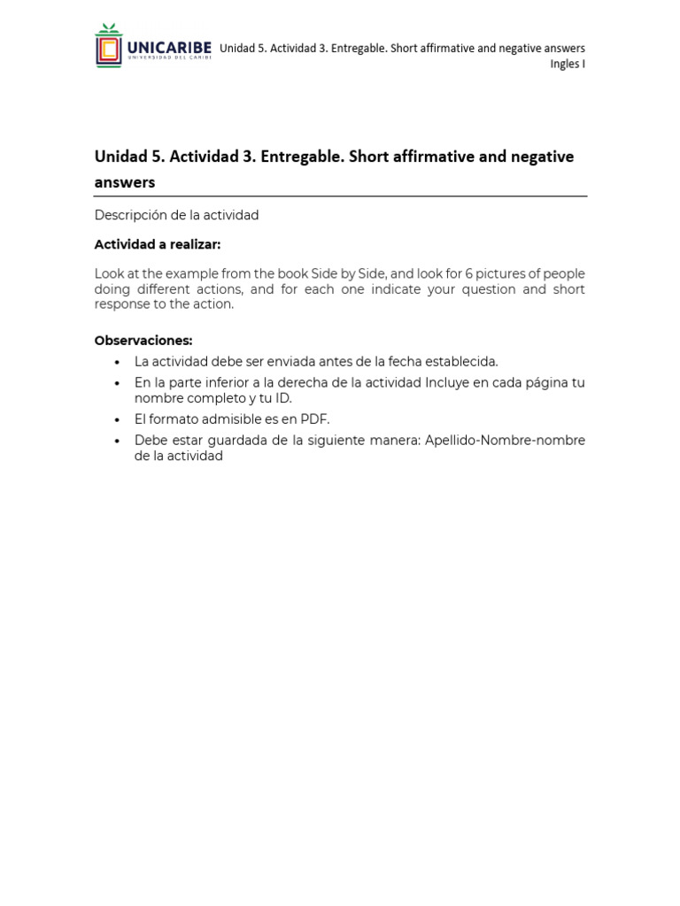 Unidad 5 Actividad 3 Entregable Short Affirmative and Negative Answers ...