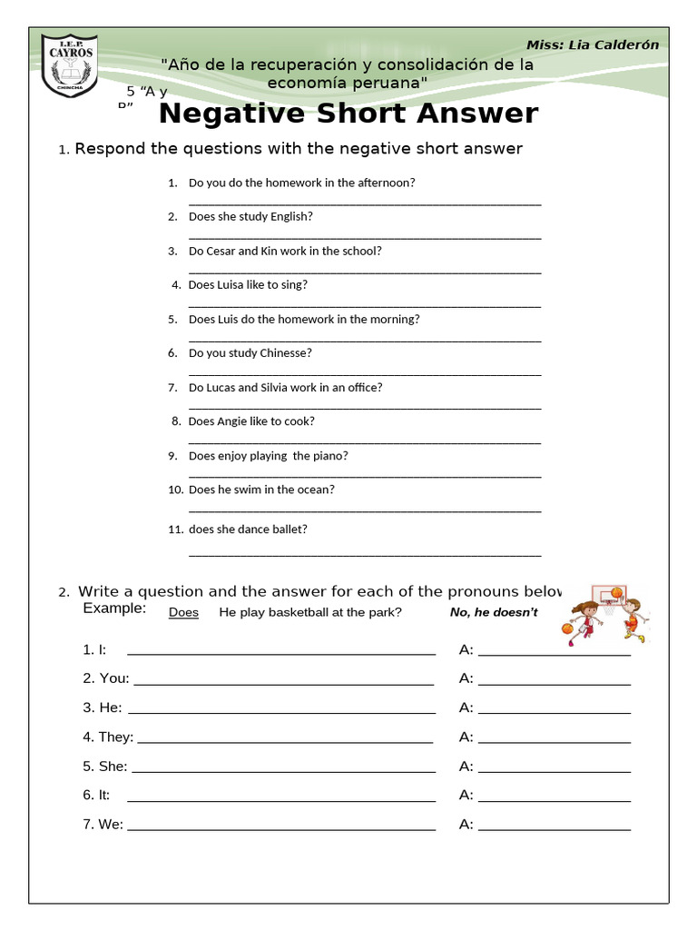 Short affirmative and negative answers U5 A3 - Ingles - RISELOT ROJAS ...