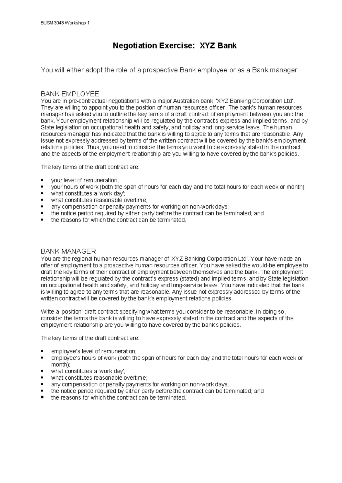 BUSM3048 Topic 1 Negotiation Exercise - BUSM3048 Workshop 1 Negotiation ...