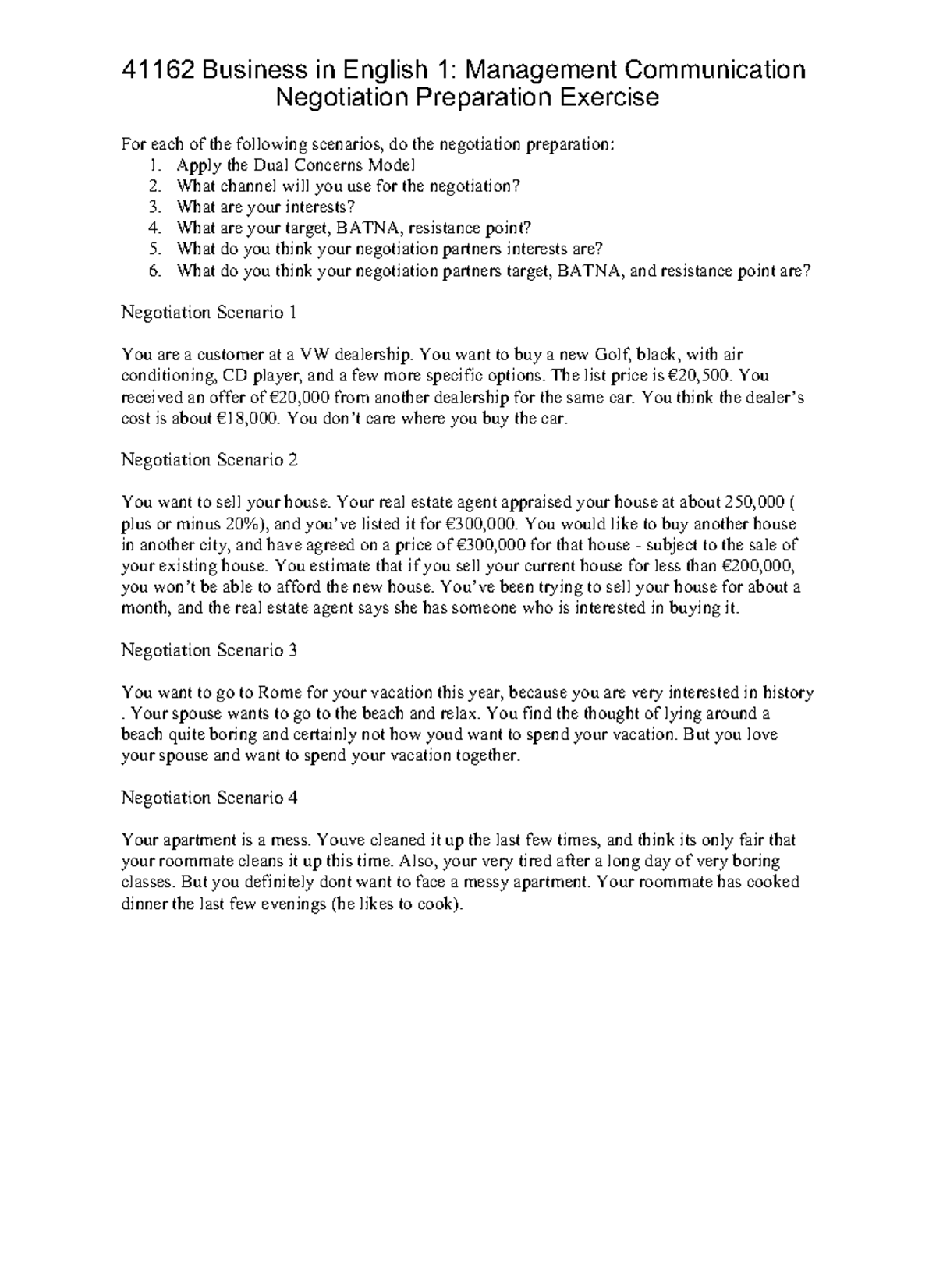 Negotiation Preparation Exercise - 41162 Business in English 1 ...