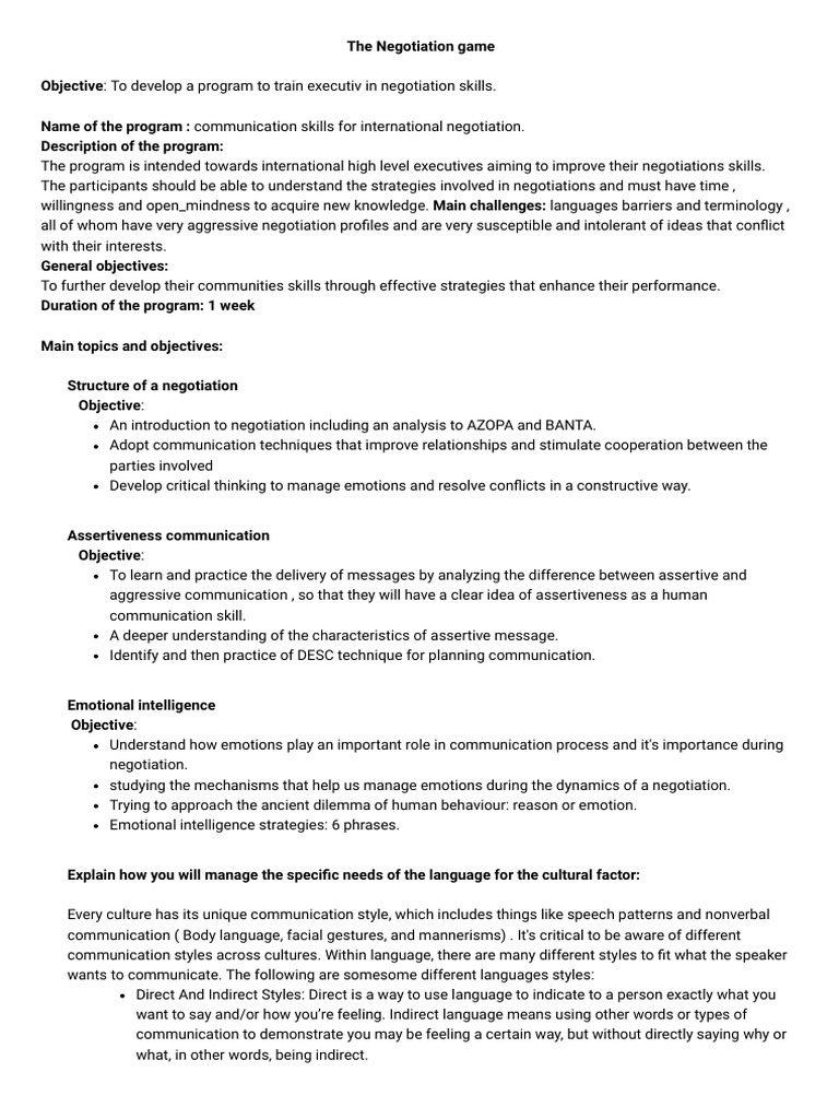 The Negotiation Game Project 2 2 | PDF | Negotiation | Communication