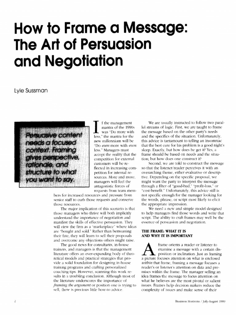 How To Frame A Message - The Art of Persuasion and Negotiation | PDF