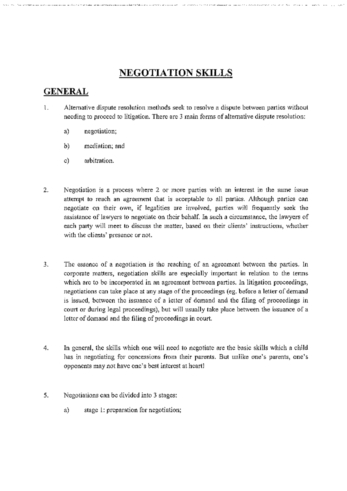 Negotiation Skills - Notes - NEGOTIATION SKILLS GENERAL 1. Alternative ...