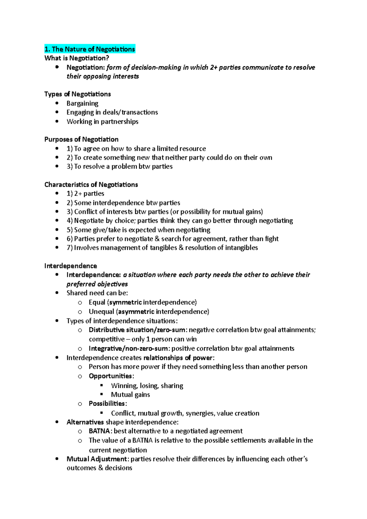 Strategic Management Notes (1-9) - 1. The Nature of Negotiations What ...