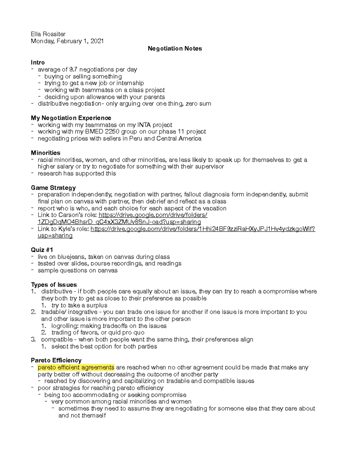 Negotiation Notes - Ella Rossiter Monday, February 1, 2021 Negotiation ...