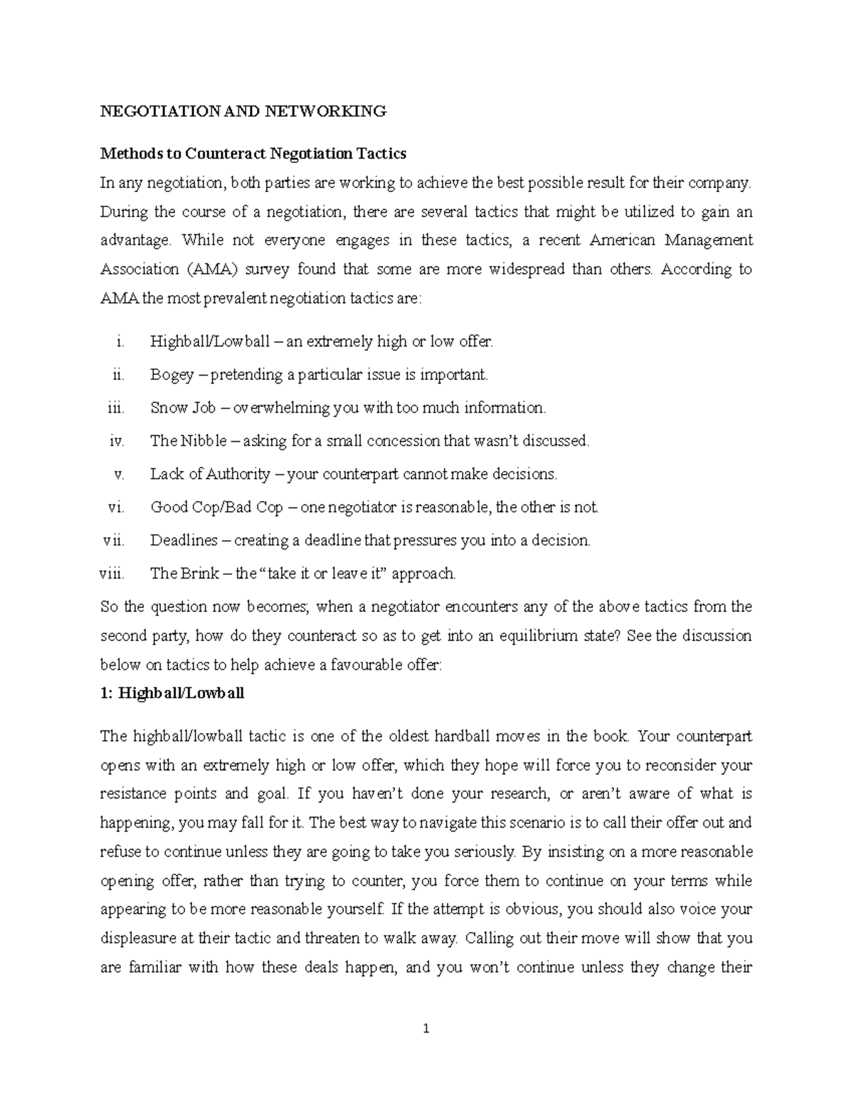 Negotiations and networking notes - NEGOTIATION AND NETWORKING Methods ...