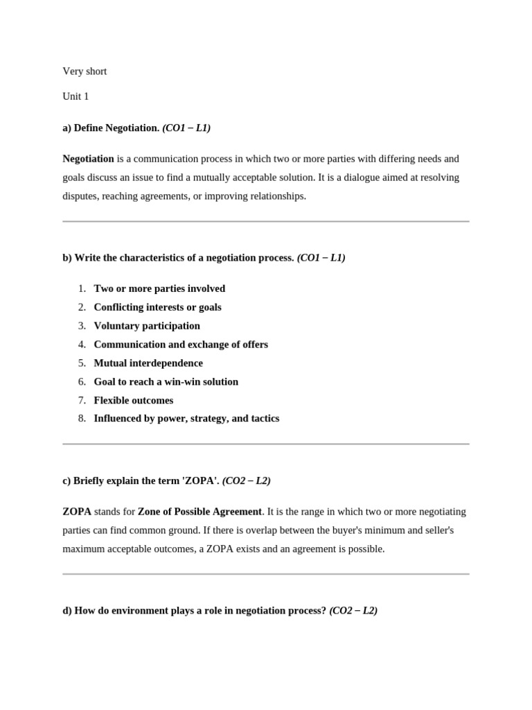 Comprehensive Notes on Negotiation Theory (Course Code: First Exam ...