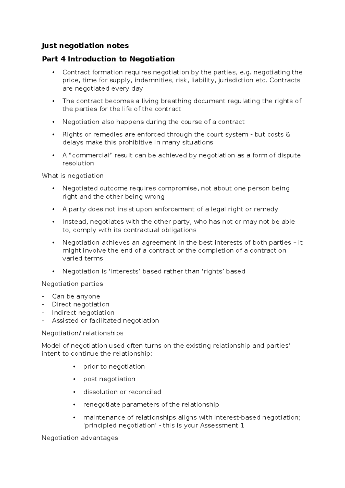 SOLUTION: Introduction to negotiation and mediation study notes - Studypool