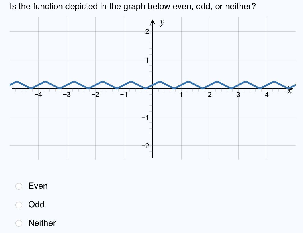 SOLVED: Is the function shown in the graph below even; odd, or neither?