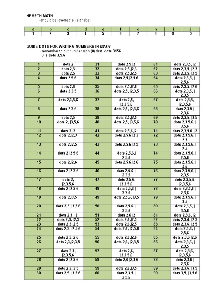 Braille Helps: Nemeth Charts 1 & 2 | Writing systems, Chart, Braille