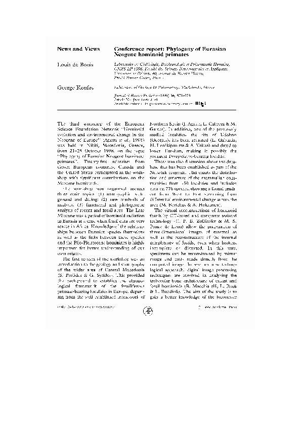 (PDF) Conference report: Phylogeny of Eurasian Neogene hominoid primates