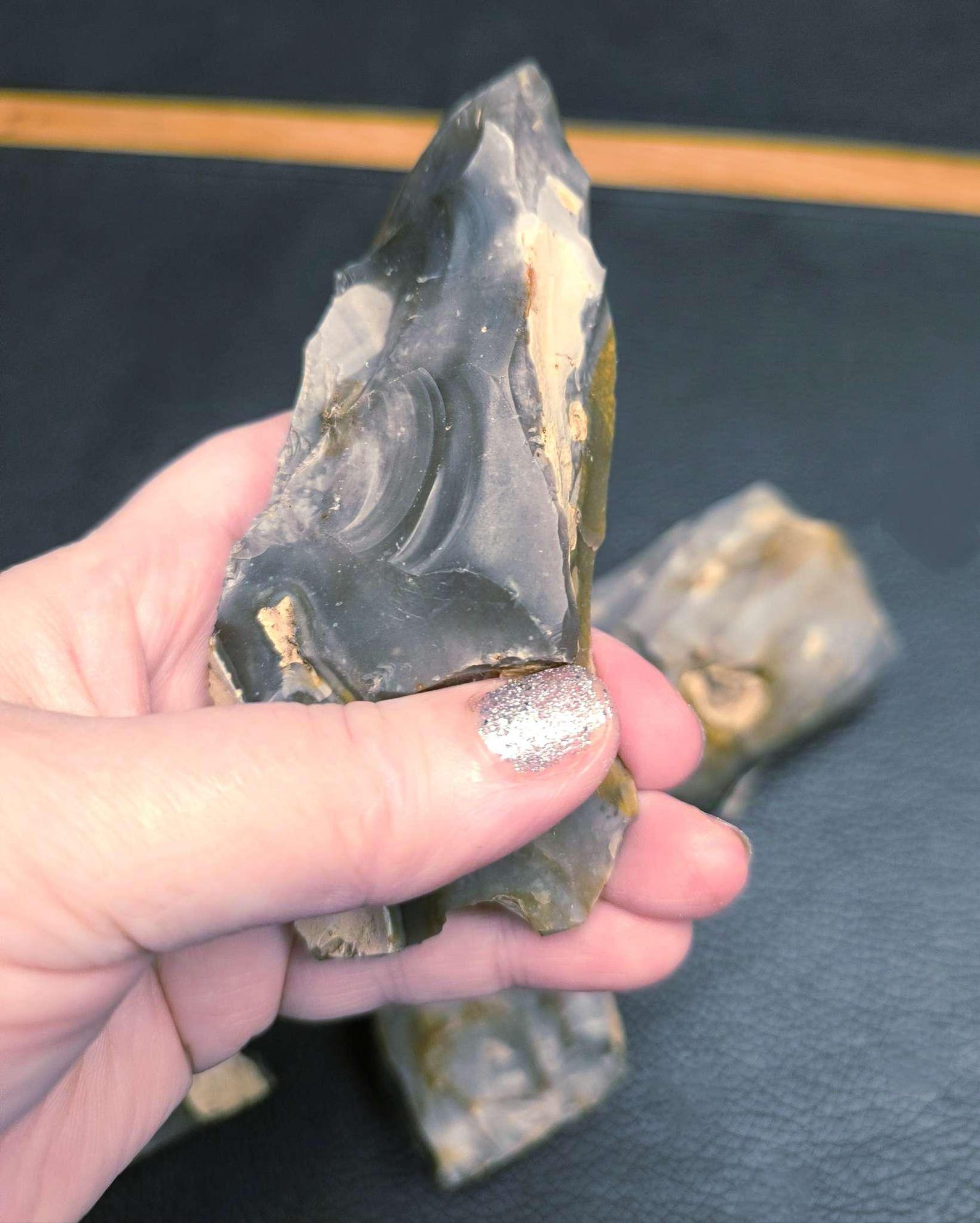 A good-sized Neolithic flint scraper found at Grimes Graves in 1976