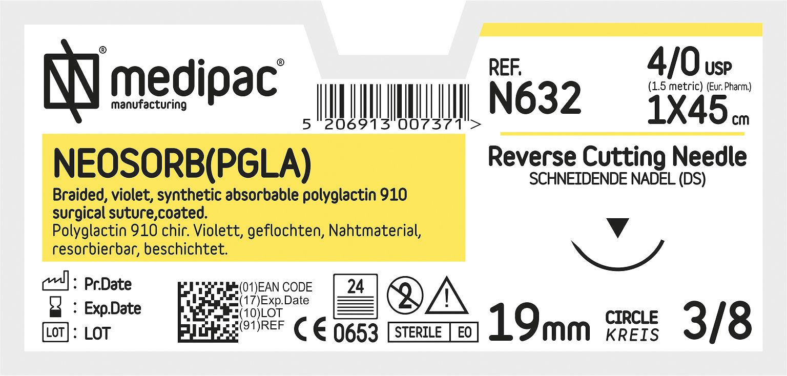 NEOSORB PGLA sutures 3/8 16mm 45 cm - MEDIPAC