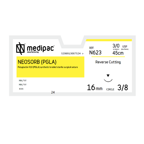 Pack de 24x N623 Neosorb Pgla 3/0 45 cm 16 mm 3/8 RC Medipac - Medibloux