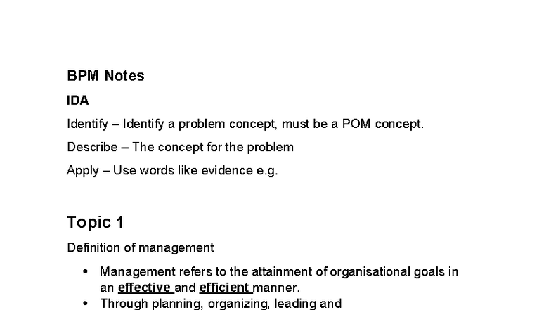 BPM Notes IDA: Understanding Management Concepts and Planning - Studocu