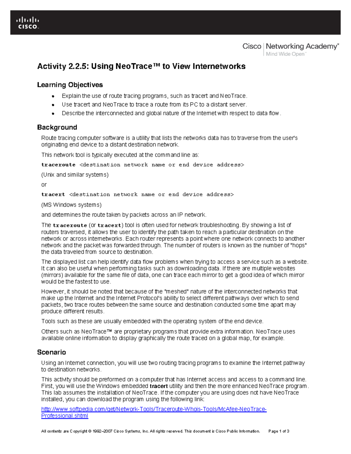 Using NeoTrace™ to Analyze Internet Pathways in CCNA Exploration - Studocu