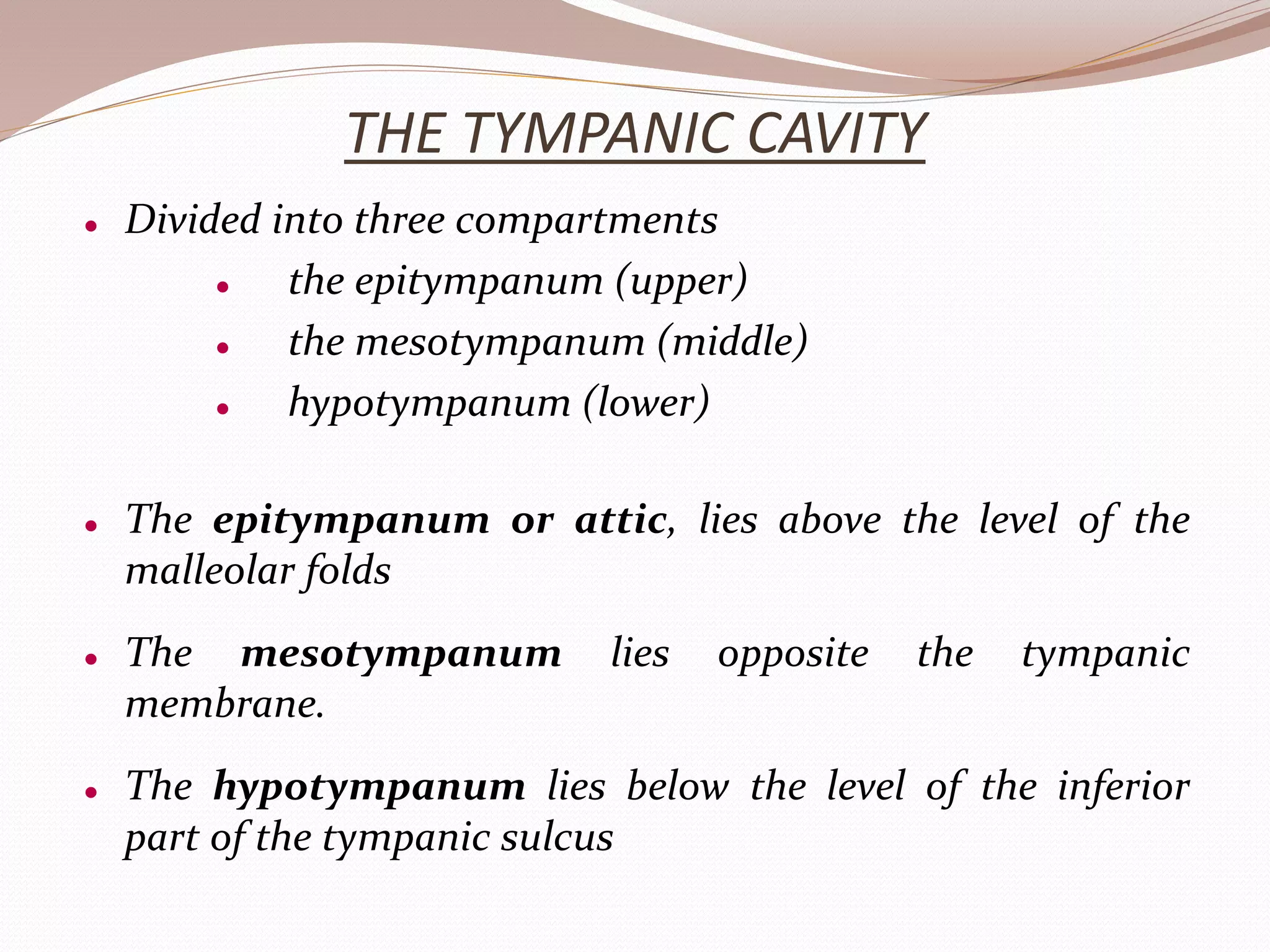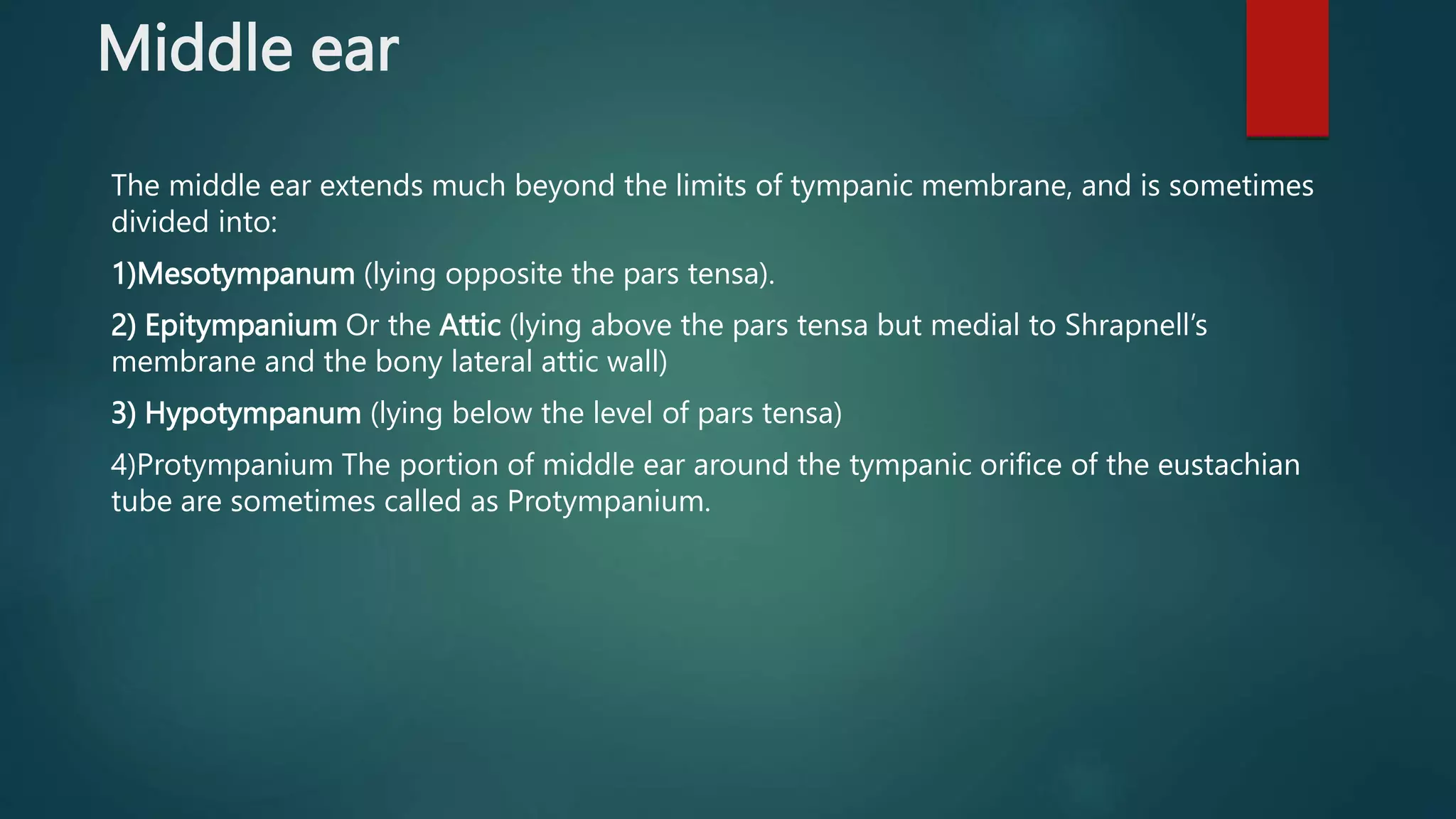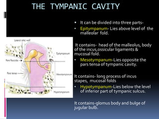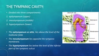 Middle ear anatomy: Epitympanum, mesotympanum, hypotympanum, tegmen ...