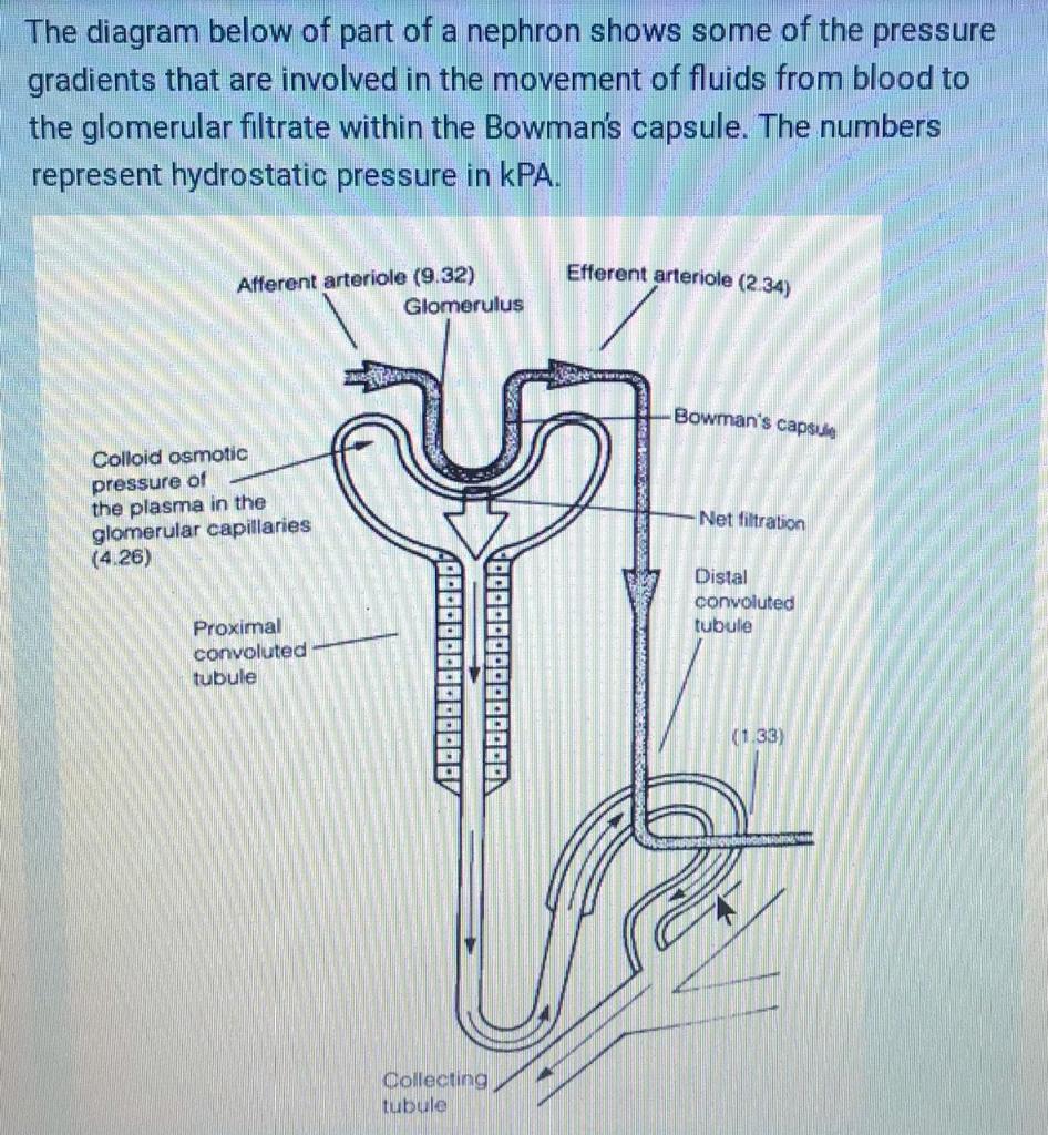 the diagram below of part of a nephron shows some of the pressure ...
