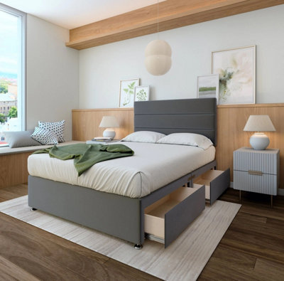 Neptune Spring Graphite Plush Velvet 2 Drawer Divan Set King Size