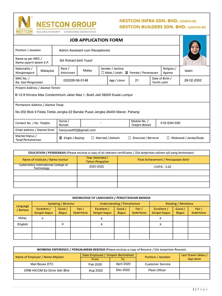 Job Application Form - Nestcon | PDF | Causes Of Death | Diseases And ...