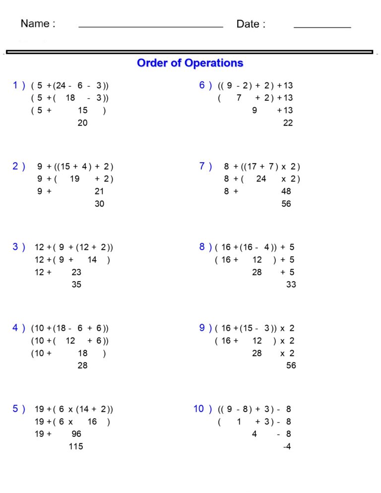 Order Of Operations Worksheet Nested Parentheses! Order Of – Math ...