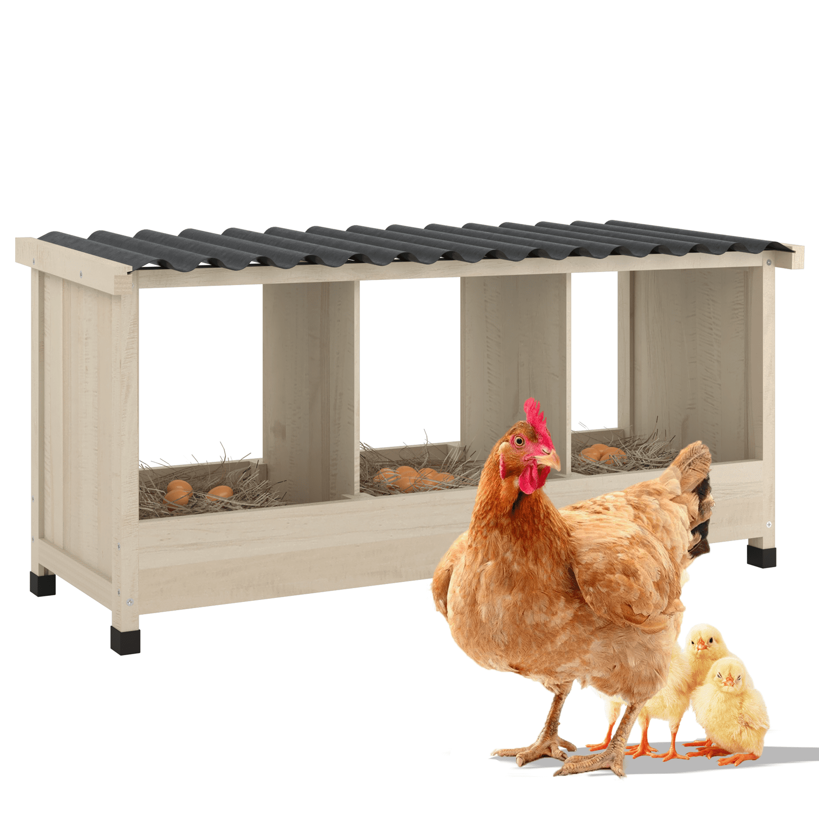 TIMHAKA Chicken Nesting Box, 3 Holes Wooden Chicken Coop w/ PVC Roof ...