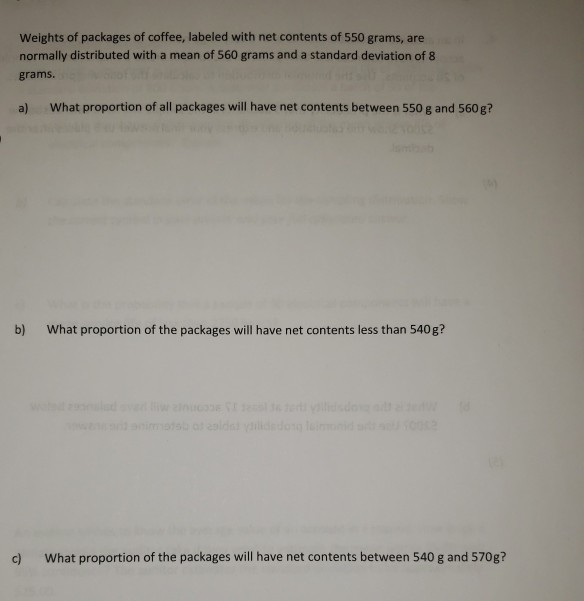 Solved Weights of packages of coffee, labeled with net | Chegg.com